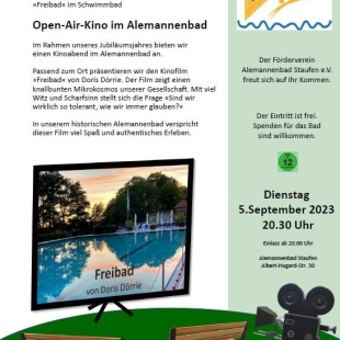 Der Förderverein lud am Dienstag, den 05. September 2023 hierzu ein und entsprechend viele Kinobegeisterte strömten in unser schönes historisches Bad.