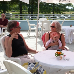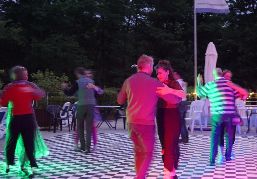 Beides verbindet die Freude - an Musik und Baden - in netter Gesellschaft. Tanzende und Nicht-Tanzende genossen diesen besonderen musikalischen Abend bei einem Gläschen Wein oder Sekt in geselliger Runde trotz kühlem Wetter und drohendem Regen. Letzlich hatte der Wettergott ein Einsehen mit uns und erlaubte bis 23 Uhr einen trocken Abend.
