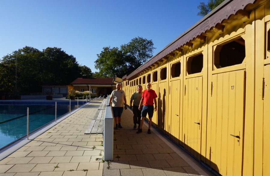 Nach 159 ehrenamtlichen Malerstunden von Peter Poser mit Herbert Steiger erstrahlt das Alemannenbad in neuem Glanz. Die gesamte wetterseitige Kabinenfront inkl. Kassenbereich wurden geschliffen, gespachtelt, grundiert und gestrichen.