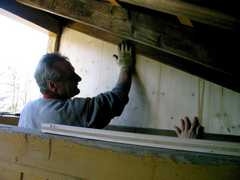 Nachdem der Weg zur Arbeitsstelle geräumt war, ging es dann ans Werk. Während die Einen die Holzverblendungen in den Umkleideräumen anbrachten, war das zweite Team mit der Befestigung der Wandisolierungen und der Fliesenträger in den Sanitärräumen beschäftigt. So wurde also bis Nachmittag unermüdlich gesägt, genagelt, gebohrt und geschraubt.